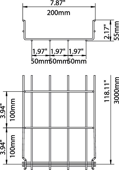 Für die Gitterrinne werden keine zusätzlichen Verbinderbauteile benötigt, sie wird einfach ineinandergesteckt. Die Maschenweite beträgt 50 x 100 mm (Ausnahme GRM 55/50 = 20 x 100 mm).
