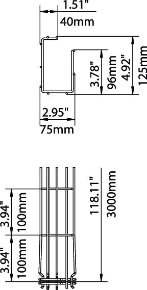 Gitterrinne in G-Form aus punktgeschweißten Stahldrähten mit unterschiedlichen Seitenhöhen und Breiten.