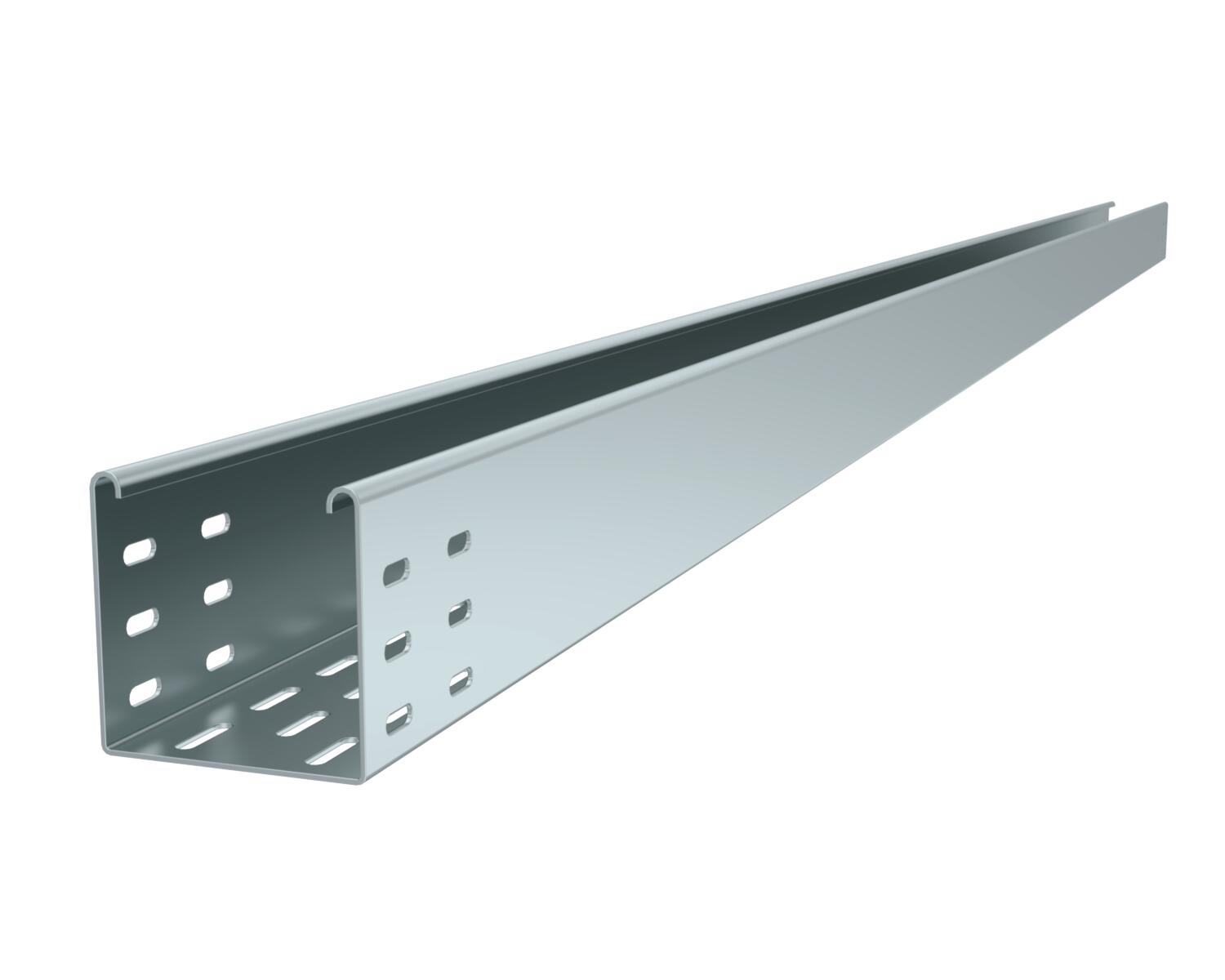 Schweres, begehbares Kabelrinnen-System BKRS mit Bodenlochung, in 100 mm Seitenhöhe.