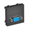 Multimediaträger mit einer VGA-Anschlussbuchse, Kabelauslass gerade, mit Beschriftungsfeld, VGA-Buchse (HD15) mit Schraubanschluss. Trägerplatte mit Rastbefestigung, geeignet für den waagerechten und senkrechten Einbau in die Systemumgebung.