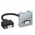 Multimediaträger mit einer D-Sub9-Anschlussbuchse, Kabelauslass gerade, mit Beschriftungsfeld, kurzes D-Sub9-Anschlusskabel (RS232) in Ausführung Buchse-Buchse. Träger mit Rastbefestigung, geeignet für den waagerechten und senkrechten Einbau in die Systemumgebung.