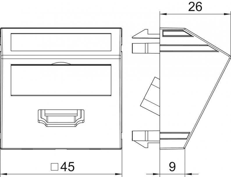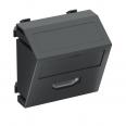 Multimediaträger mit einer HDMI Anschlussbuchse, Kabelauslass schräg, mit Beschriftungsfeld, HDMI Buchse mit Schraubanschluss. Trägerplatte mit Rastbefestigung, geeignet für den waagerechten und senkrechten Einbau in die Systemumgebung.