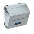 Multimediaträger mit einer USB 3.0-Anschlussbuchse, Kabelauslass schräg, mit Beschriftungsfeld, USB 3.0-Buchse Typ A mit Schraubanschluss. Trägerplatte mit Rastbefestigung, geeignet für den waagerechten und senkrechten Einbau in die Systemumgebung.