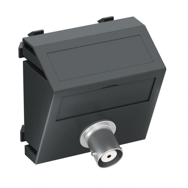BNC Anschluss, 1 Modul, Auslass schräg, als 1:1 Kupplung, schwarzgrau