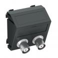 2x BNC Anschluss, 1 Modul, Auslass schräg, als 1:1 Kupplung, schwarzgrau