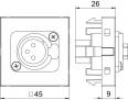 Multimediaträger mit einer XLR-Anschlussbuchse, Kabelauslass gerade, ohne Beschriftungsfeld, XLR-Buchse 3-polig mit Schraubanschluss. Trägerplatte mit Rastbefestigung, geeignet für den waagerechten und senkrechten Einbau in die Systemumgebung.
