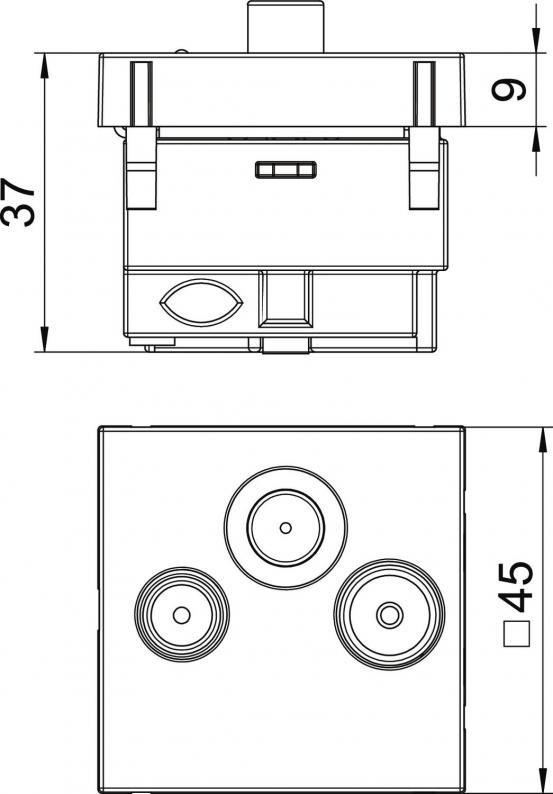 Stichdose für Antennen-, BK- und Satellitenempfangs-Anlagen mit Anschluss für TV, Radio und SAT.