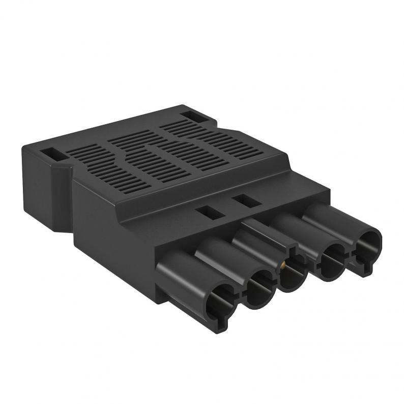Steckerteil 5-polig, Typ GST18i mit Schraubanschluss für Leitungen 1,5 - 2,5 mm², ein- und feindrähtig, mit Zugentlastung, ein Anschluss pro Pol, unmontiert, für Leitungen H05VV (Ø 9,5 - 13,5) NYM und (Ø 10,5 - 13,5 mm), verriegelbar, gemäß Zugentlastung nach VDE 0628 ist eine Verriegelung vorzusehen, 250 V, 16 A.