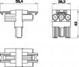 T-Verteiler mit Verriegelung, Typ GST18i, 1 Eingang mit Steckerteil 3-polig und 2 Ausgängen mit Buchsenteil 3-polig.