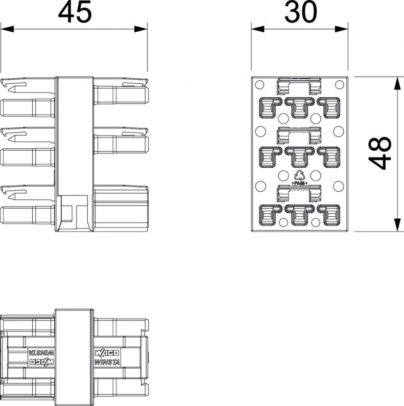 5-fach-Verteiler, 3-polig, Typ WINSTA® MIDI.