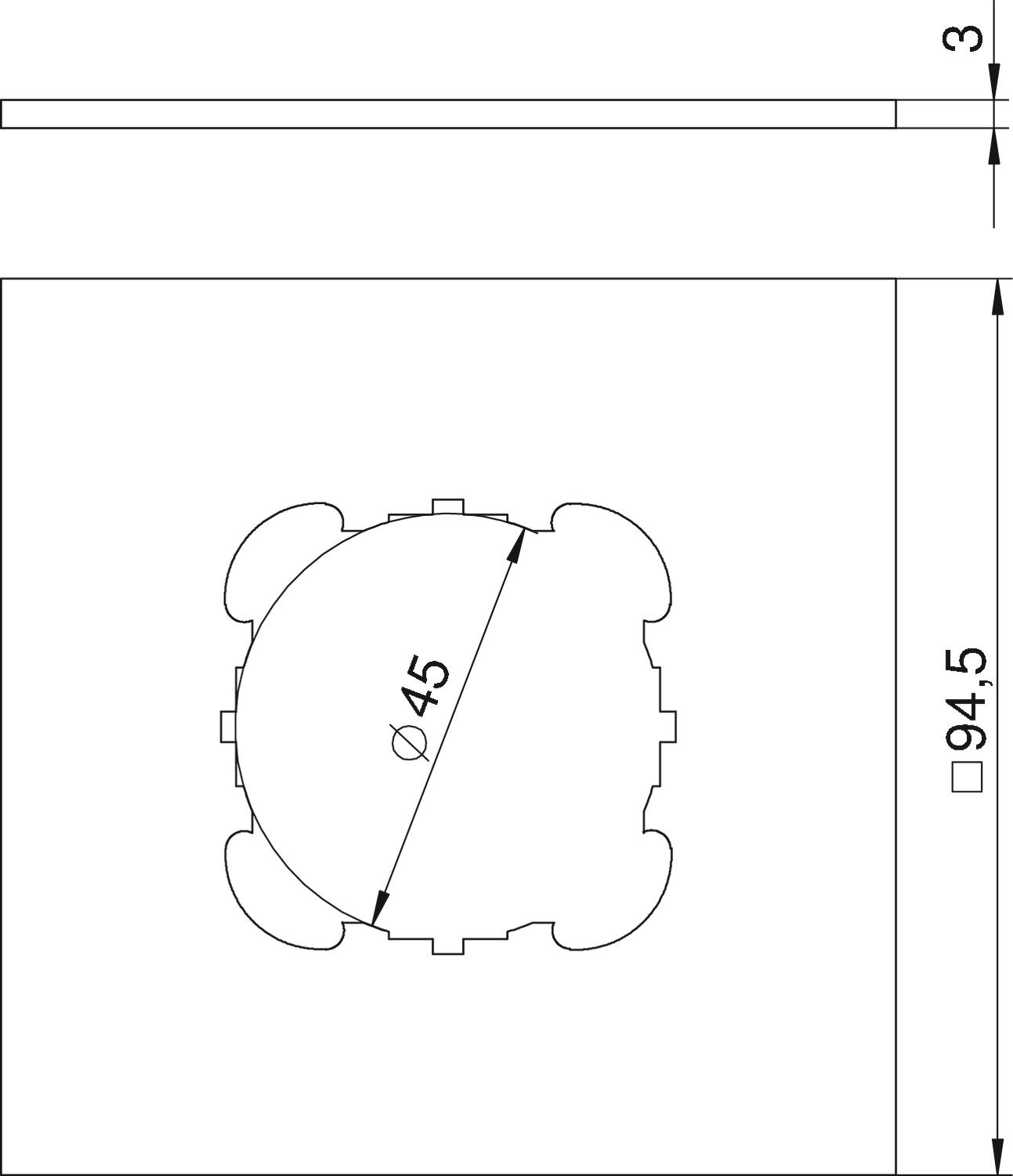 Abdeckplatte mit Öffnung Ø 45 mm zum Einbau eines Installationsgerätes mit UP-Tragering oder -Tragebügel.