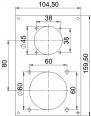 Abdeckplatte mit einer Ø 45-mm-Öffnung zum Einbau einer Anbausteckdose (Typ ASD-...) mit 38-mm-Befestigungsspur und einer Ø 60-mm-Öffnung zum Einbau einer CEE-Steckdose 16/32 A mit 60-mm-Befestigungsspur, inklusiv 8 Schrauben zur Gerätebefestigung.