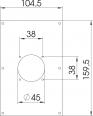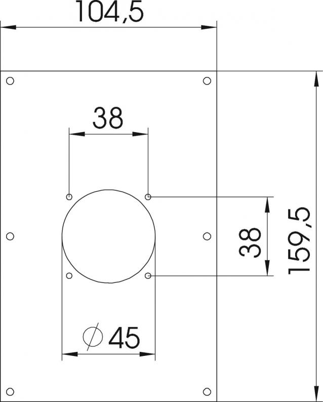 Abdeckplatte mit Öffnung zum Einbau einer Steckdose mit Befestigungssystem 38 x 38 mm.