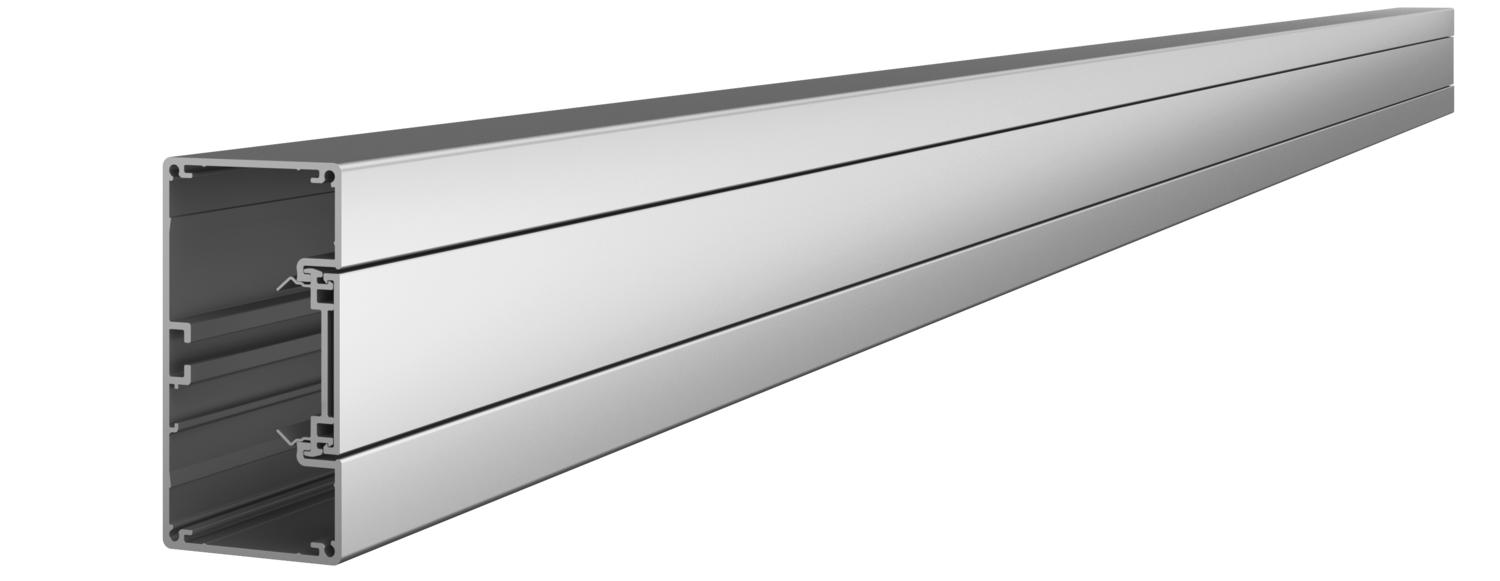 Geräteeinbaukanal Aluminium komplett bestehend aus Unter- und Oberteil. Das Unterteil ist ohne Bodenlochung.