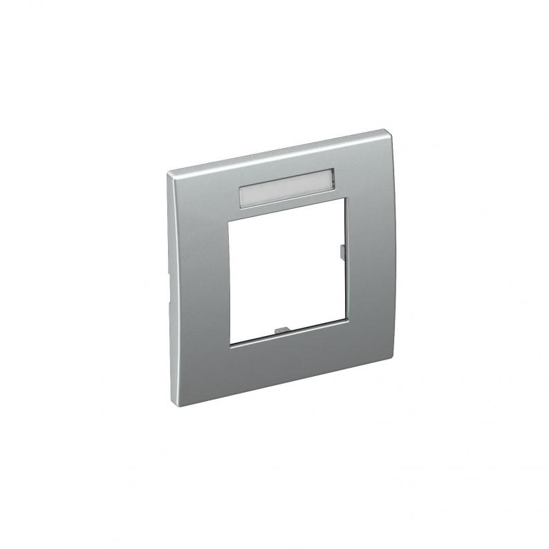 Frontrastender Abdeckrahmen für Modul 45 Einbaugeräte, 1fach, mit Beschriftungsfeld für waagerechte Geräteinstallation, zum Rasten in Geräteeinbaudose 71GD8-2.