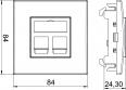 Einbaueinheit zur Aufnahme von zwei Datentechnikmodulen Typ RM, geeignet für den Einbau in Geräteeinbau-Kanalsysteme Rapid 80 und Installationssäulen ISS. Datentechnikträger Typ RM ist für die Aufnahme der nachfolgenden Daten-Anschlussmodule geeignet: OBO (Typ): ASM-C5, ASM-C5 G, ASM-C6 und ASM-C6 G; R&M: Kat. 5 und Kat. 6 Module ohne Trägerplatte.