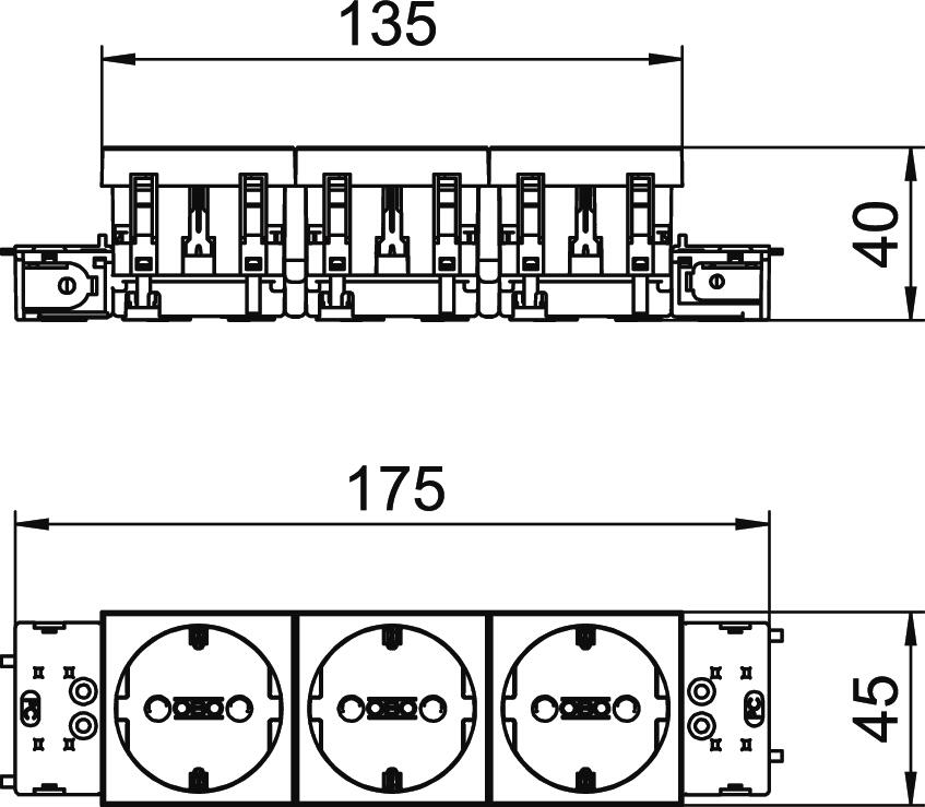 Steckdose 0°, Connect 45, Schutzkontakt, 3-fach