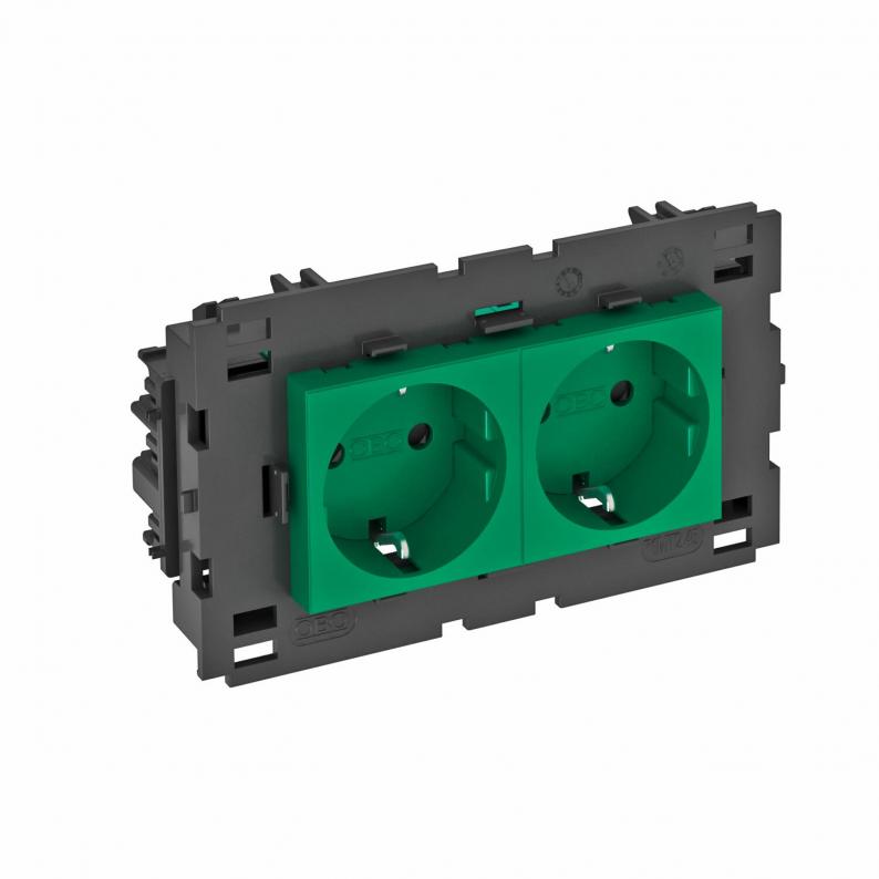 Schutzkontakt-Steckdose mit seitlichem Anschluss 2-fach 0°, mit erhöhtem Berührungsschutz, mit Steckklemmen, 2-polig, 16 A, 250 V~, mit Verbindungsklemmen nach IEC 60884-1, geeignet für den Einbau in Geräteeinbau-Kanalsysteme Rapid 80.
