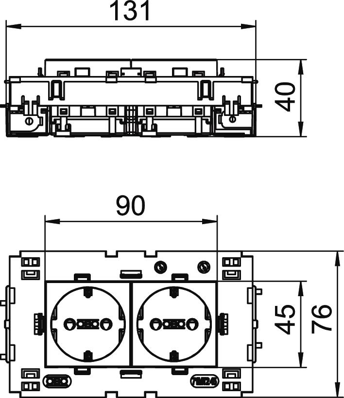 Steckdose 0°, Connect 80, Schutzkontakt, 2-fach