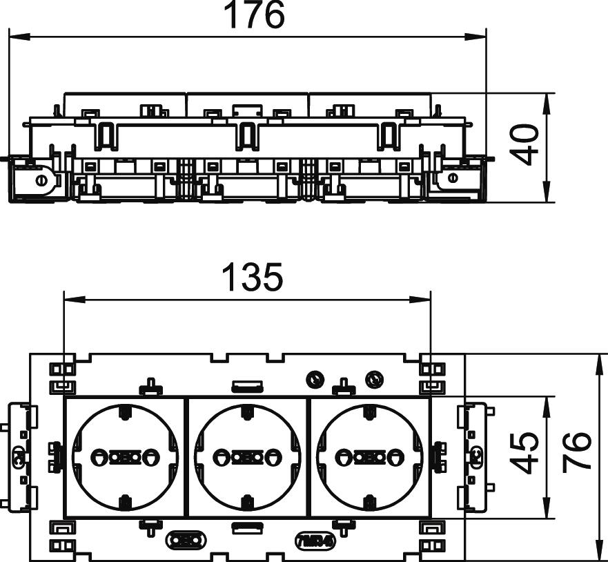 Steckdose 0°, Connect 80, Schutzkontakt, 3-fach