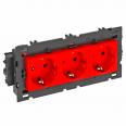 Schutzkontakt-Steckdose mit seitlichem Anschluss 3-fach 0°, mit erhöhtem Berührungsschutz, mit Steckklemmen, 2-polig, 16 A, 250 V~, mit Verbindungsklemmen nach IEC 60884-1, geeignet für den Einbau in Geräteeinbau-Kanalsysteme Rapid 80.