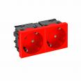 Schutzkontakt-Steckdose 2-fach 33°, mit erhöhtem Berührungsschutz, mit Steckklemmen, 2polig, 16 A, 250 V~, mit Verbindungsklemmen nach IEC 60884-1.