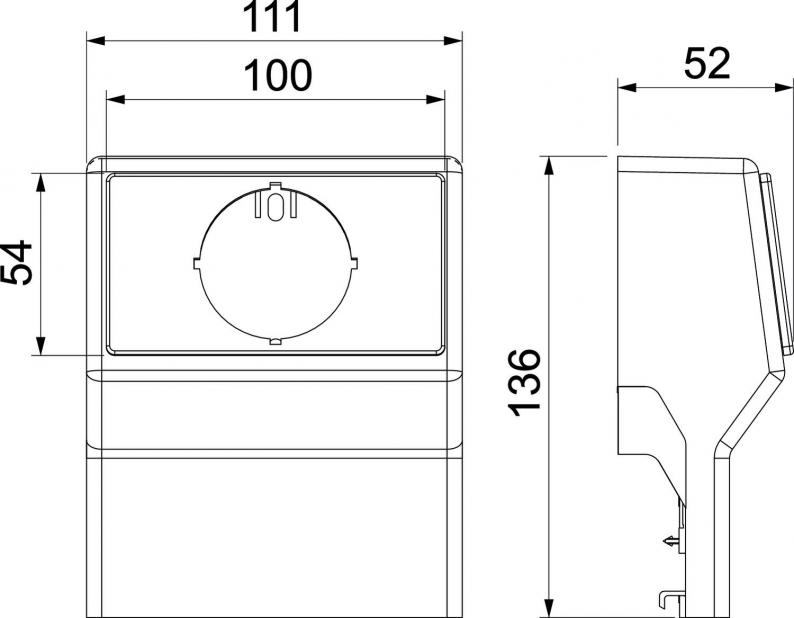 Geräteträger leer für die Sockelleistenkanal-Systeme SL, SL-L und SL-T zur Installation von Einbaugeräten in Tragbügelbauweise (nach DIN 49075) in den Kanalbreiten 50 und 70 mm.