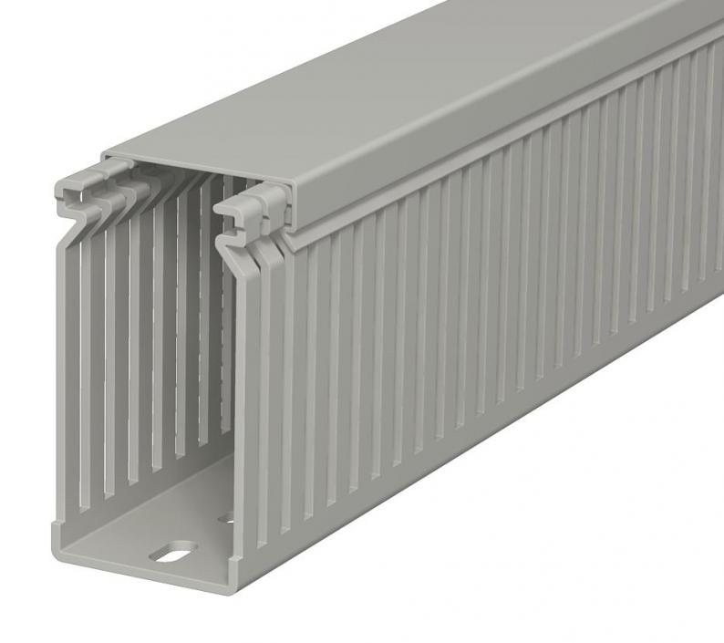 Verdrahtungskanal inkl. Oberteil und Bodenlochung zur waagerechten und senkrechten Verlegung elektrischer Kabel und Leitungen im Schaltschrank. Ausführung als metrischer Kanal. Das Nennmaß der Systemgröße entspricht dem Innenmaß der Kanäle. Das Ausbrechen der Stege erfolgt werkzeuglos. Bodenbündiges Ausführen ist durch Sollbruchstellen möglich. Geprüft nach DIN EN 50085-2-3. Sonderlängen auf Anfrage.