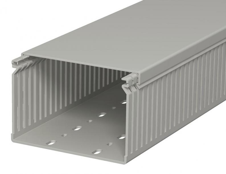Verdrahtungskanal inkl. Oberteil und Bodenlochung zur waagerechten und senkrechten Verlegung elektrischer Kabel und Leitungen im Schaltschrank. Ausführung als metrischer Kanal. Das Nennmaß der Systemgröße entspricht dem Innenmaß der Kanäle. Das Ausbrechen der Stege erfolgt werkzeuglos. Bodenbündiges Ausführen ist durch Sollbruchstellen möglich. Geprüft nach DIN EN 50085-2-3. Sonderlängen auf Anfrage.