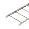 Kabelleiter in Seitenhöhe 60 mm mit eingeschweißten, nach oben offenen C30- Profil Sprossen. Eingerollter Seitenholm zur Verstärkung und als Kantenschutz. Die Befestigung auf dem Ausleger erfolgt mit Klemmstücken Typ LKS 40. Das Schlitzmaß der Sprosse beträgt 16,5 mm, die passende Bügelschelle ist der Typ 2056.