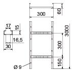 Kabelleiter mit gelochtem Seitenholm in der Seitenhöhe 60 mm mit eingenieteten, nach oben offenen C-Profil-Sprossen (Ausführung VS).