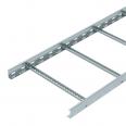 Kabelleiter in Seitenhöhe 60 mm mit eingeschweißten, nach oben offenen C30 Profilsprossen. Eingerollter Seitenholm zur Verstärkung und als Kantenschutz. Die Befestigung auf dem Ausleger erfolgt mit Klemmstücken Typ LKS 40. Das Schlitzmaß der Sprosse beträgt 16,5 mm, die passende Bügelschelle ist der Typ 2056.