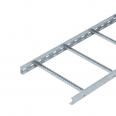 Kabelleiter in Seitenhöhe 60 mm mit eingeschweißten, nach oben offenen C30 Profilsprossen. Eingerollter Seitenholm zur Verstärkung und als Kantenschutz. Die Befestigung auf dem Ausleger erfolgt mit Klemmstücken Typ LKS 40. Das Schlitzmaß der Sprosse beträgt 16,5 mm, die passende Bügelschelle ist der Typ BS-H....