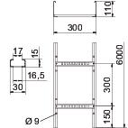 Kabelleiter mit gelochtem Seitenholm in der Seitenhöhe 110 mm mit eingenieteten, nach oben offenen C-Profil-Sprossen.