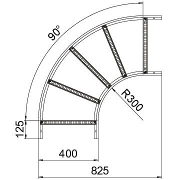 Bogen 90° horizontal mit geschweißter Sprosse für alle Kabelleitertypen mit der Seitenhöhe 60 mm.