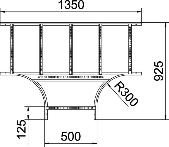 T-Stück, horizontal, mit geschweißter Sprosse für alle Kabelleitertypen mit der Seitenhöhe 60 mm.