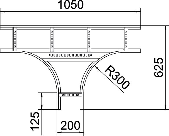 T-Stück, horizontal,mit geschweißter Sprosse für alle Kabelleitertypen mit der Seitenhöhe 110 mm.