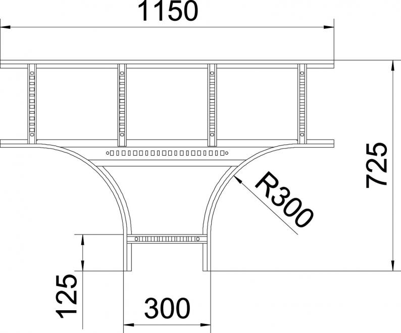 T-Stück, horizontal,mit geschweißter Sprosse für alle Kabelleitertypen mit der Seitenhöhe 110 mm.