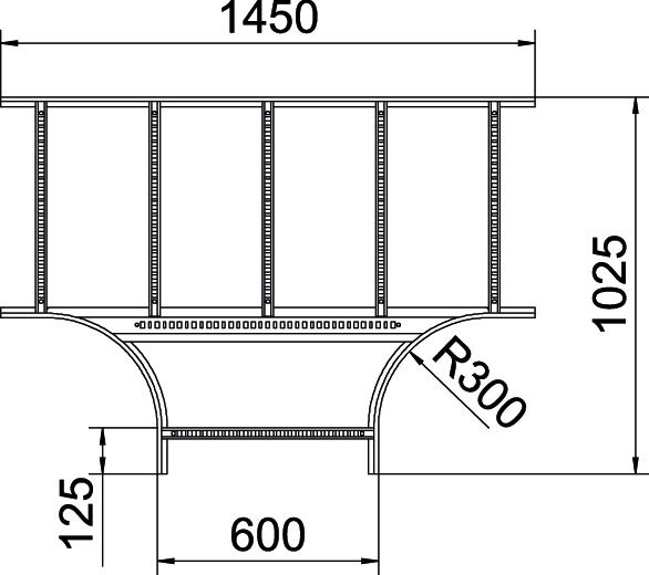 T-Stück, horizontal,mit geschweißter Sprosse für alle Kabelleitertypen mit der Seitenhöhe 110 mm.
