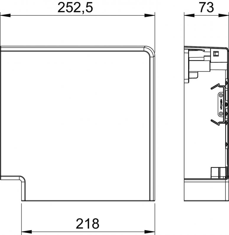 Flachwinkel-Haubenformteil aus halogenfreiem PC/ABS zur einfachen Erstellung einer steigenden oder fallenden 90° Richtungsänderung mit Geräteeinbaukanal der Serie Rapid 80 GK, GKH, GS und GA. Das Flachwinkel- Haubenformteil ist einsetzbar für symmetrische und asymmetrische Kanaltypen.