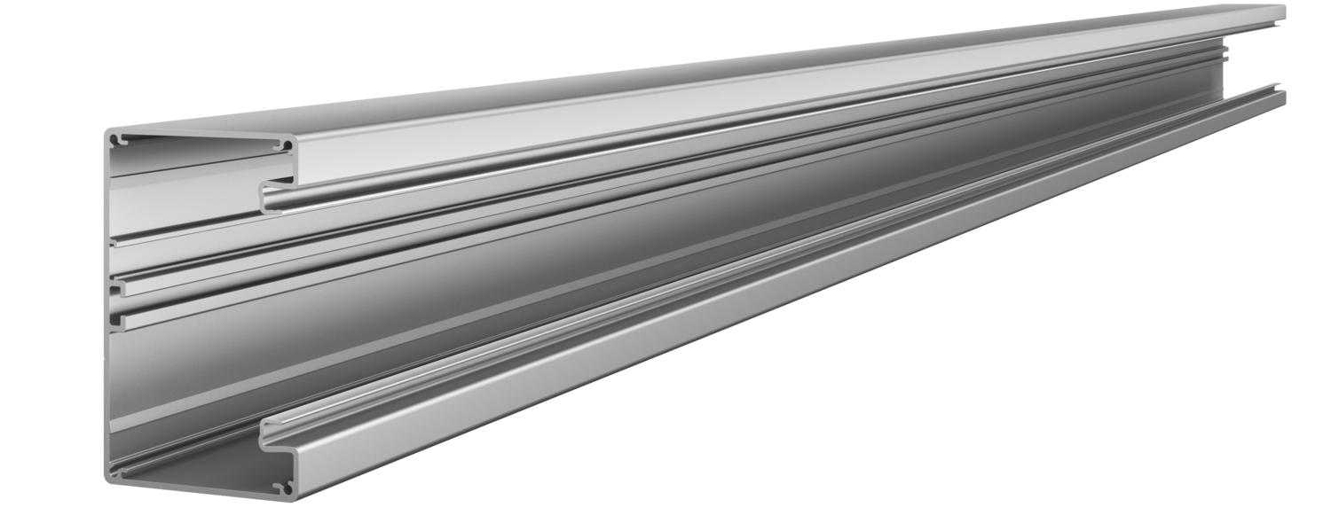 Geräteeinbaukanal ohne Bodenlochung zur direkten Wandmontage oder an Konsolen geeignet. Überlängen bis 6000 mm von Kanalunterteilen und -oberteilen sowie andere RAL-Farben können auf Anfrage realisiert werden. Die Sichtflächen der Geräteeinbaukanäle sind foliert.