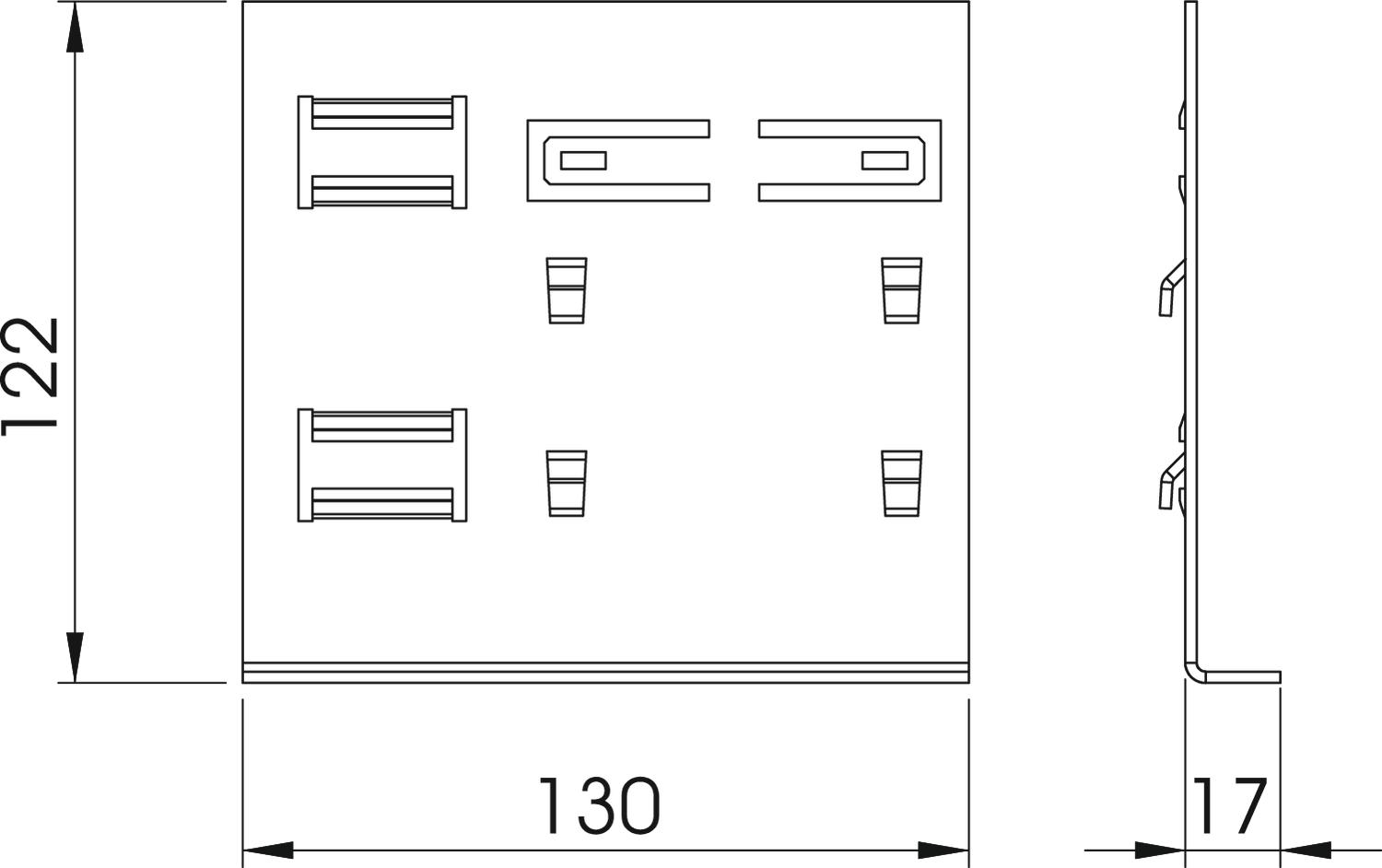 Wandkonsolenadapter zur Montage der GK70130 Geräteeinbaukanäle an Befestigungskonsolen.