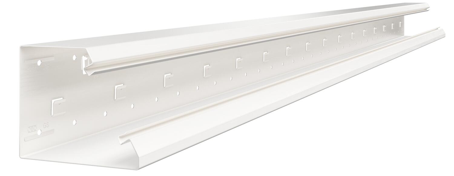 GEK-S Geräteeinbaukanal zur Installation an Arbeitstischen etc. geeignet. Die Sichtflächen der lackierten GEK-S Geräteeinbaukanäle sind foliert. Das Kanalsystem verfügt über selbstkontaktierende Rastlaschen zur Aufnahme einer Trennwand aus Stahlblech. Der Potentialausgleich zwischen den Kanalunterteilen erfolgt über die Kupplung. Zwischen Oberteil und Unterteil wird die Schutzmaßnahme und der Potentialausgleich durch die selbstkontaktierende Kanalabdeckung gewährleistet. Die Systemöffnung beträgt real 76,5 mm. Das Oberteil muss separat bestellt werden.
