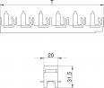 Profilverbinder horizontal mit Führungsschlitzen zum Einrasten von Konvektionsgitterprofilen. Der Profilverbinder wird mit dem Spannbügel Typ SP3 auf der Befestigungskonsole montiert.