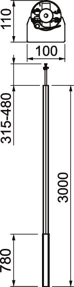 ISS Installationssäule aus Aluminium mit schmalem Rohr zur Decke.