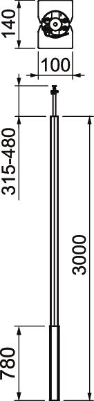 ISS Installationssäule aus Aluminium mit schmalem Rohr zur Decke.