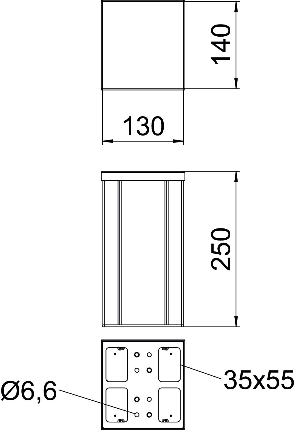 ISS Installationssäule 2-zügig aus Aluminium mit 76,5-mm-Systemöffnung.
