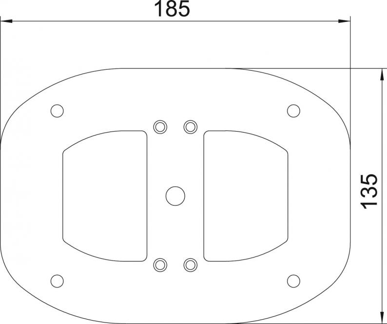 Bodenplatte mit 30 mm sichtbarem Rand und 4 Befestigungslöchern Ø 8,5 mm.