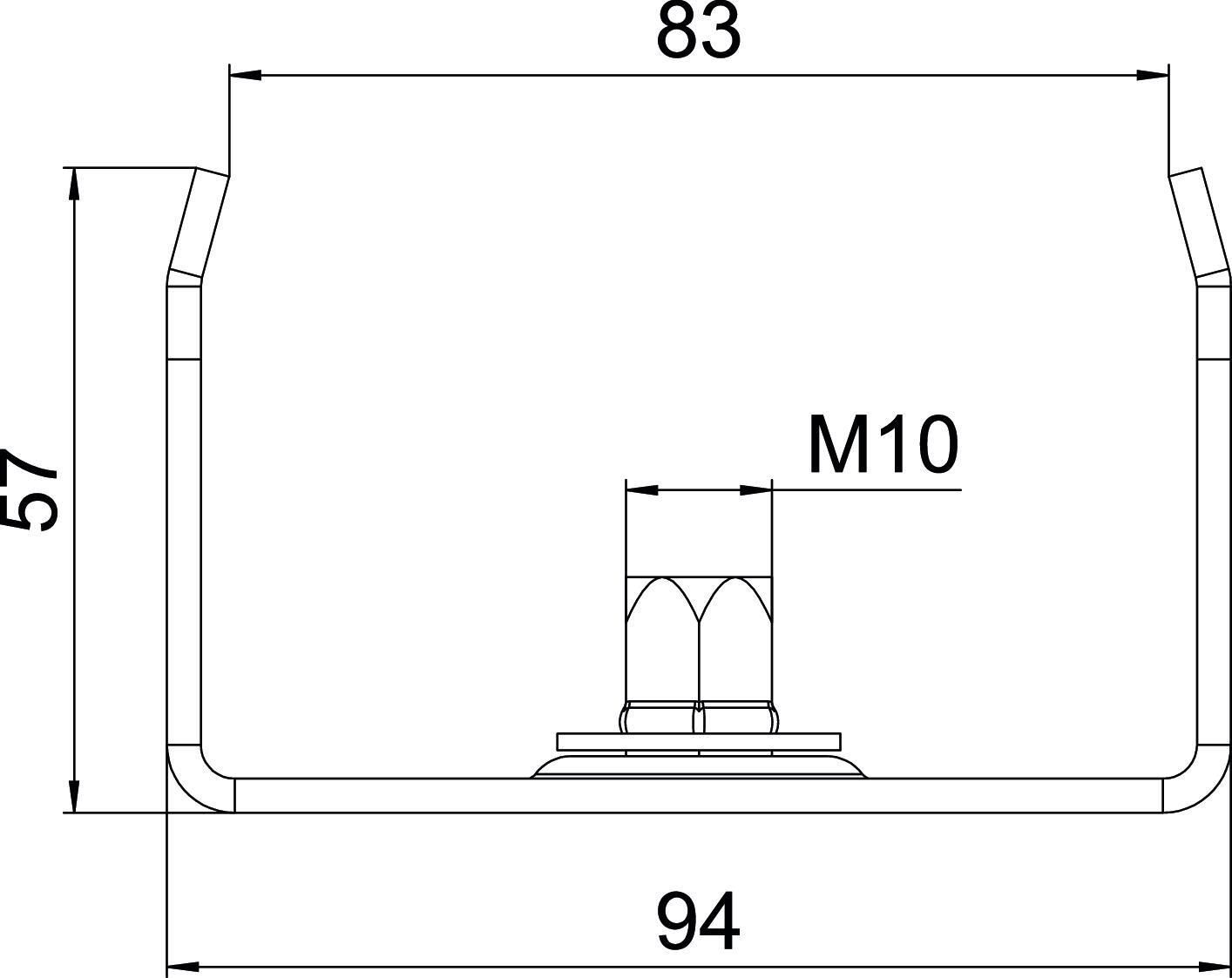 Die Mittenabhängung verfügt über eine drehbar angeordnete Gewindehülse M10. Bei der Belegung bitte auf gleichmäßige Verteilung der Last achten (einseitige Belegung vermeiden).