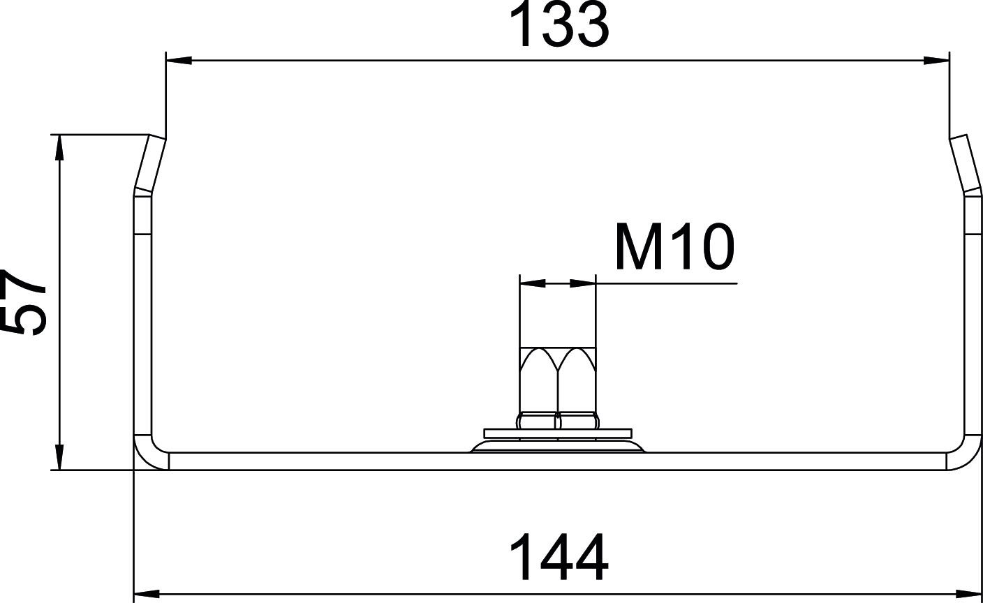 Mittenabhängung für Kabelrinnen mit eingerolltem Seitenholm in der Seitenhöhe 60 mm.
